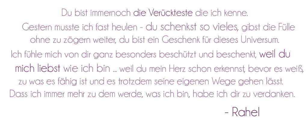 Du hast so viel Magie in mein Leben gerufen, die ich jetzt auch selber rufen kann und das ist ein wirklich großes Geschenk.