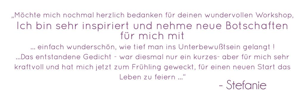 Durch deine Inspirationen werde ich immer freier - meine Kreativität ist heftigst entfacht.